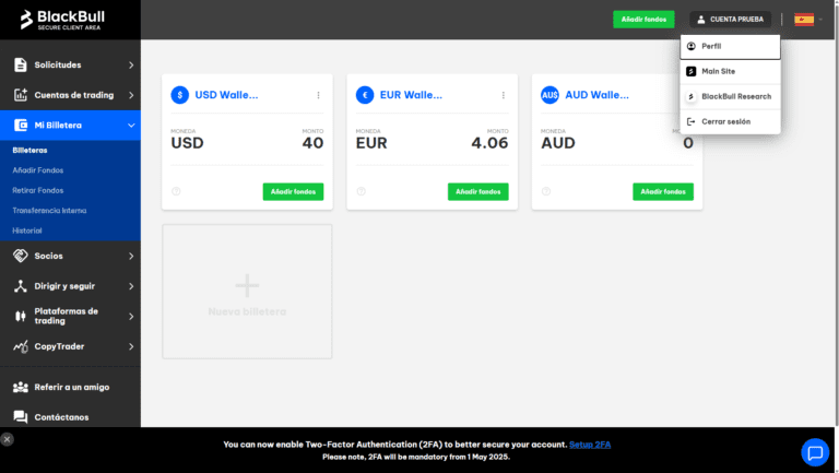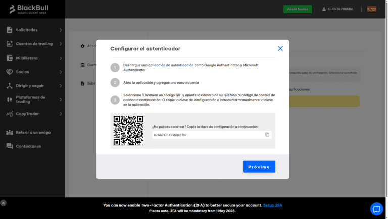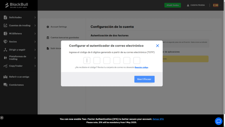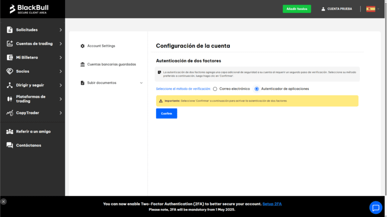 BlackBull Markets requiere ahora la autenticación de dos factores (2FA) para todos los usuarios que accedan al Área segura de clientes.