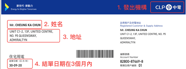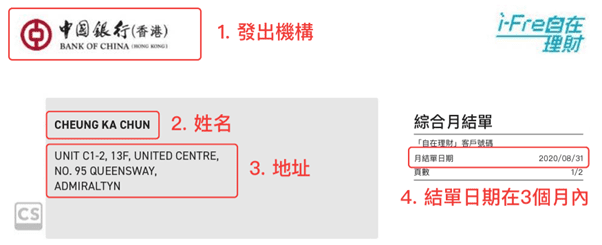 ✅ 可接受的地址证明文件(必须显示您的姓名、现居住地址、以及发出日期)
