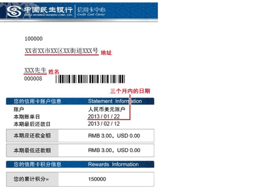 | 信用卡账单 | 包含姓名和住址的账单 | 各大银行信用卡App或邮寄 |